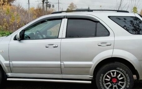 Автомобиль Kia Sorento серебристого цвета, 2006 года выпуска. Пробег 230 тысяч километров. В ПТС три собственника. Объем двигателя 2,4 литра, мощность 139 лошадиных сил. Тип двигателя - бензин. Коробка механическая, привод - полный....